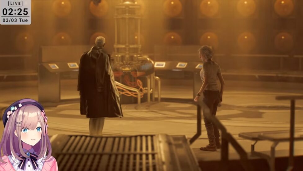 懐かしの油圧式ジャッキを使い、東のシャッターを開けて進んだ鈴原さん。何やら話し声が聞こえます。近づくとゼノとグレースがおり、ギデオンが狙っていたエルピスやグレースの隠された秘密が明らかになります。