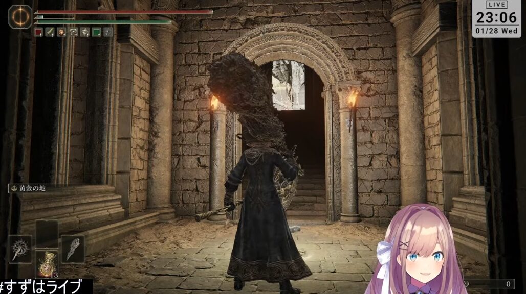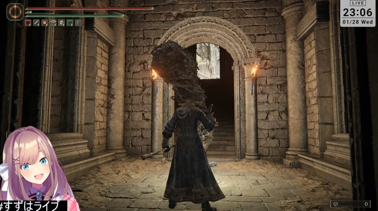 28日 23時00分、鈴原さんの4日ぶりのエルデンリング配信となります。