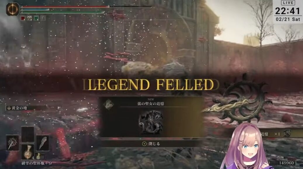クリアおめでとうございます! 長いようで短かった… ずっと観たかったるるちゃんのエルデンリングの始まりから終わりまで見届けることが出来て楽しかったです! 本当にありがとう!