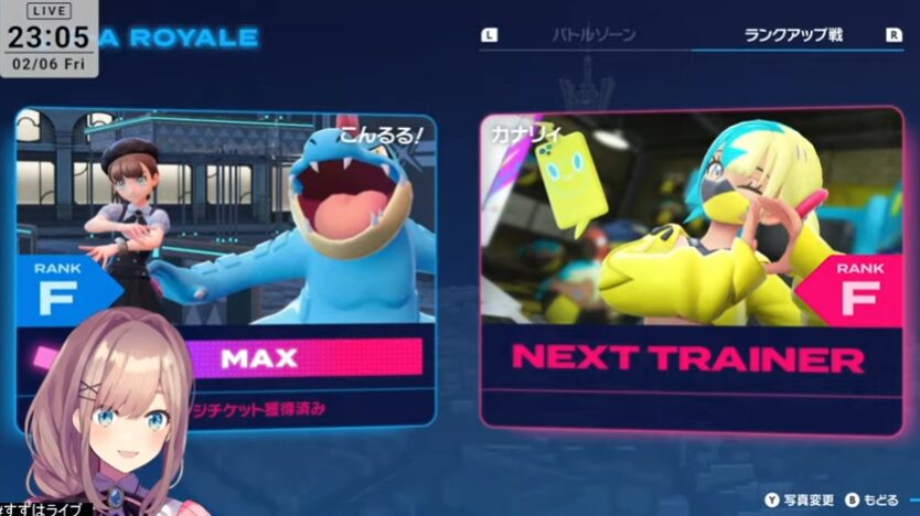 前回、約8時間の配信で、Switch版からSwitch2版へのアップグレードに伴い、改めてポケモンたちの進化を見届けるところからスタート。ランクアップ戦を重ねてランクWからランクVへと昇格しました。
