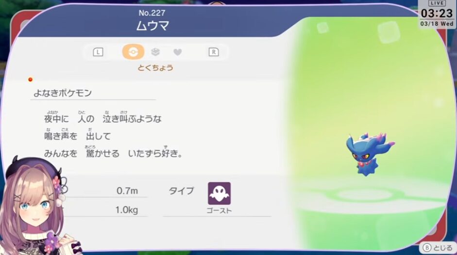 よなきポケモンのムウマ
