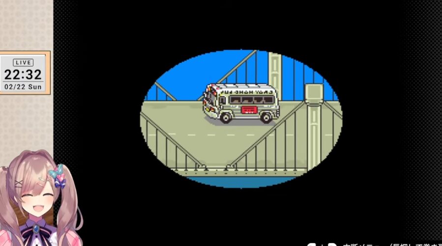 22時30分、少々音がガビっているMOTHER2のデモBGMが流れ出しますが、すぐに解消してニッコニコな鈴原さんが登場です。本日はツインテーるるですね。
