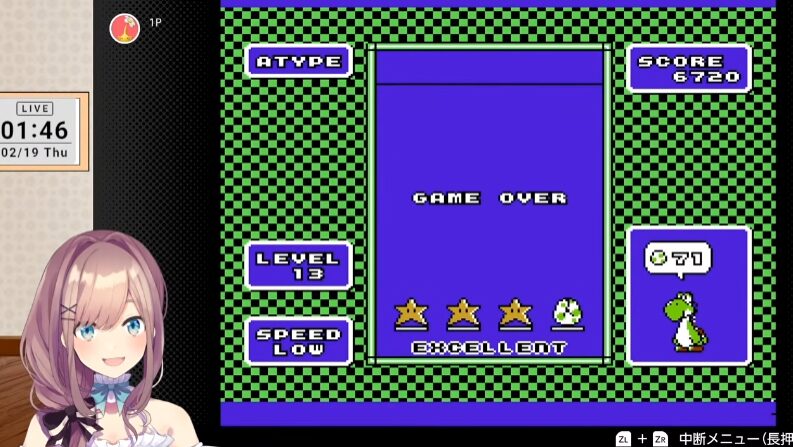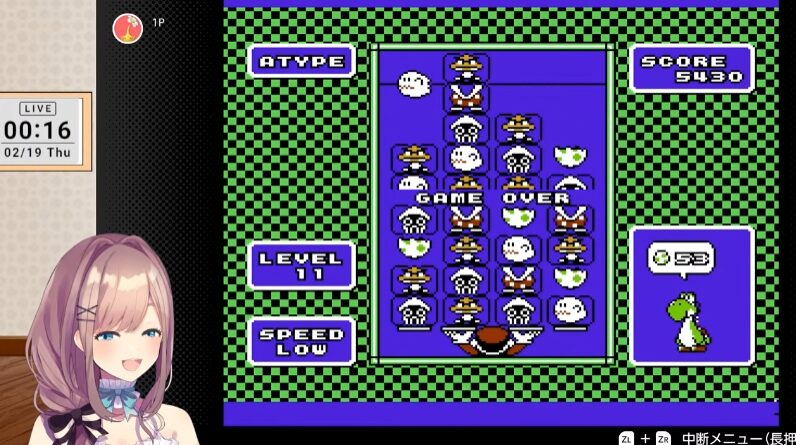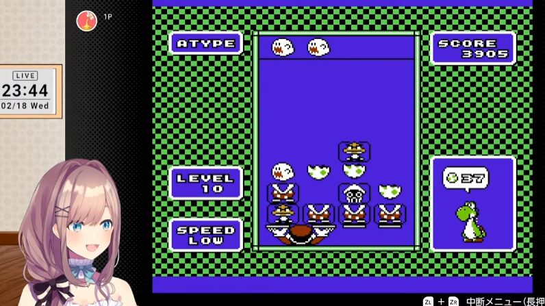 今回、鈴原さんは、Nintendo Switch Onlineのファミリーコンピュータ Nintendo Classics版でプレイしていきます。ヨッシー使いの鈴原さん、操作するのはマリオですが、果たして何匹のヨッシーを生み出すことができるでしょうか?