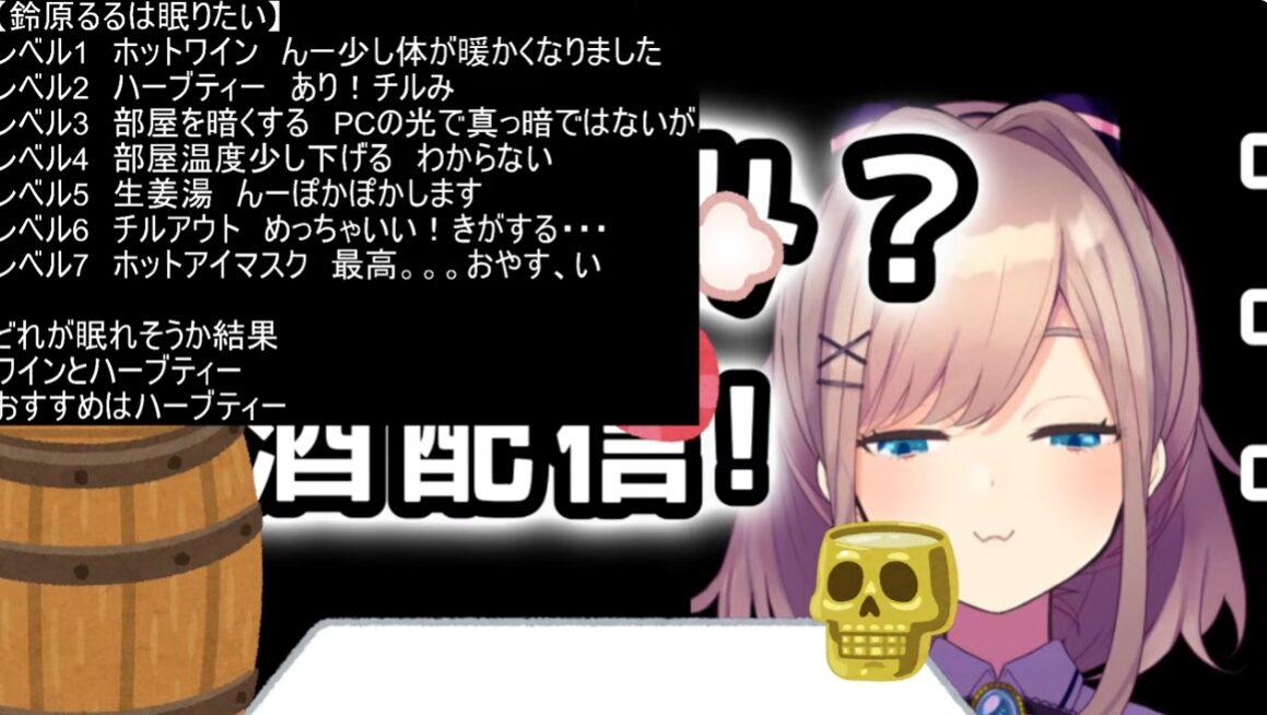 【配信時間 1:26:22】 2026年3月4日(水)20時00分、『鈴原るる』さんの配信は眠るための飲酒雑談回?となりました。一体どういうことでしょうか?