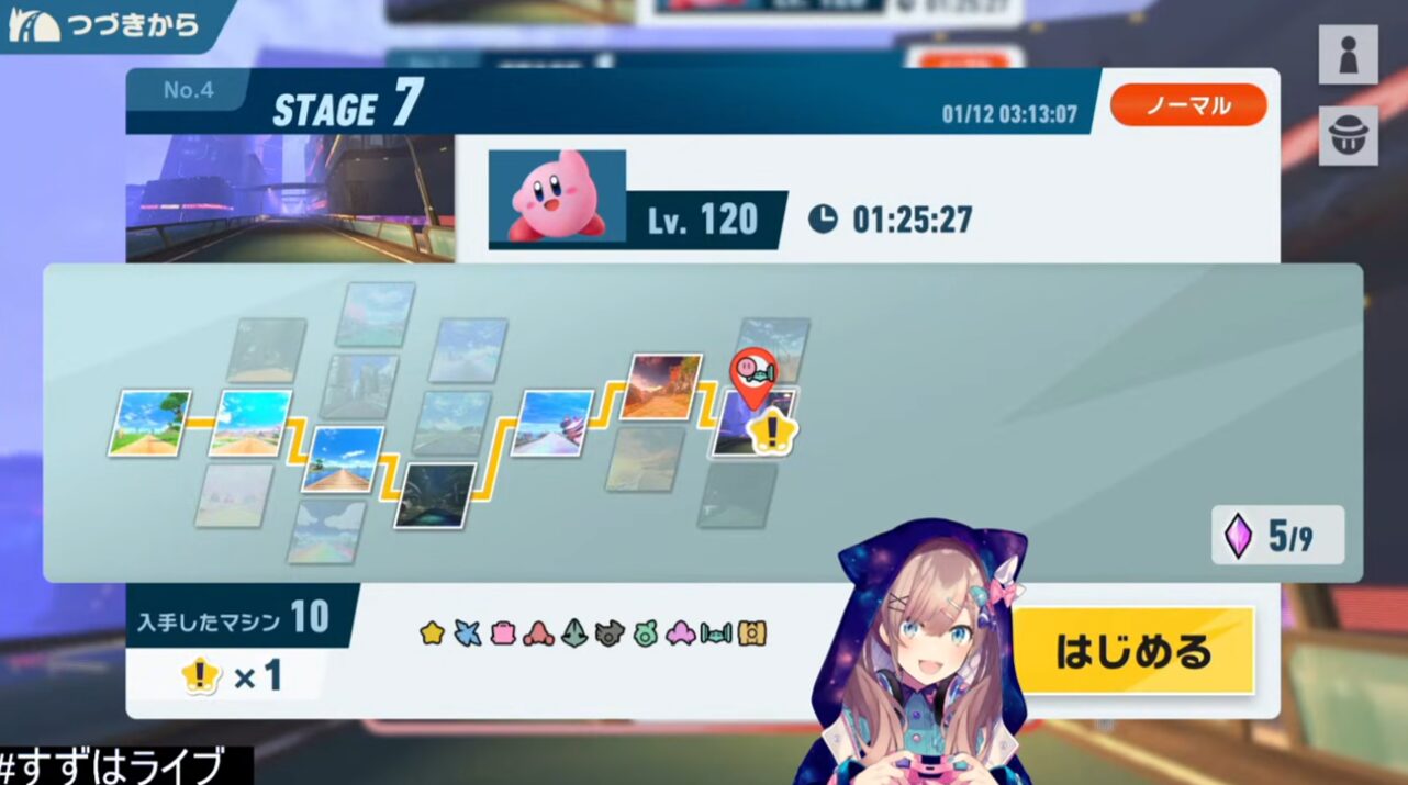 【配信時間 5:11:40】2026年1月12日、『鈴原るる』さんの挑戦タイトルは、昨日に引き続き『カービィのエアライダー』!